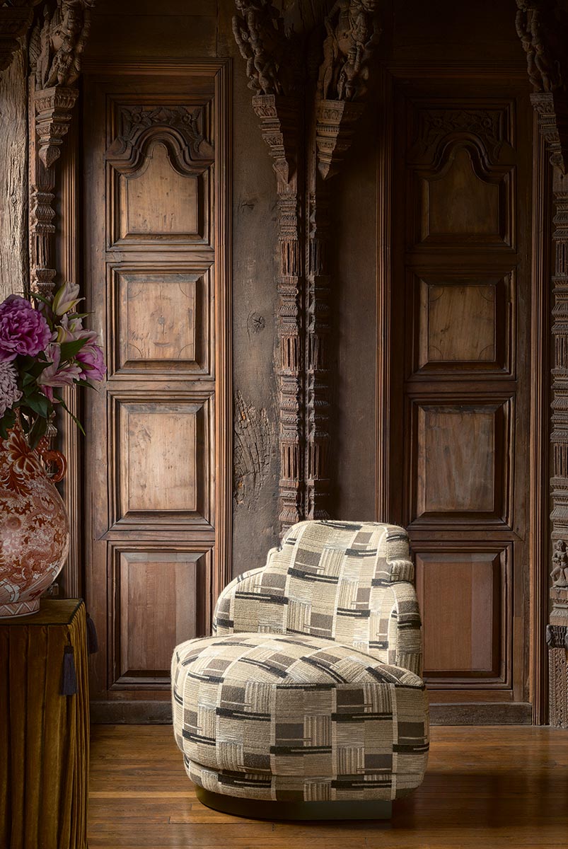 Tissé dans les ateliers Pierre Frey du nord de la France.Entreprise du Patrimoine Vivant.