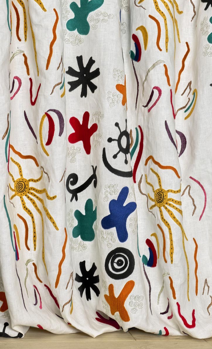 Broderie sur lin réinterprétant une œuvre de Noémie de Yturbe, MIRAKLE est une ode au voyage, une expression puissante de totems et de symboles artist...