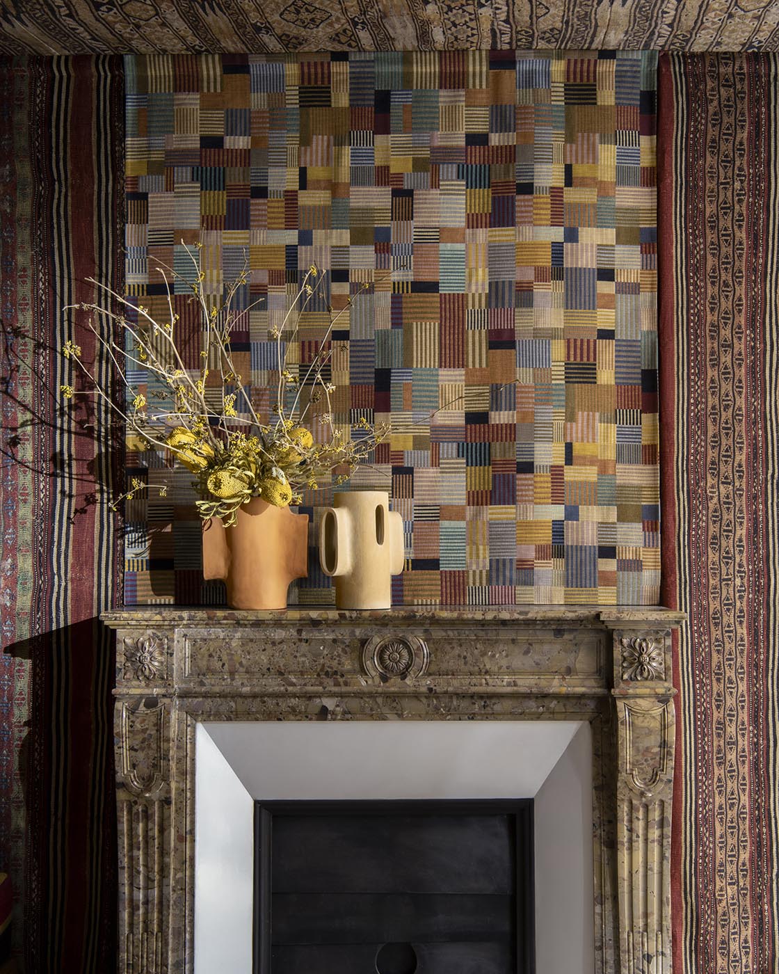SOUK est un charmant patchwork rayé aux tonalités chaudes et terreuses et à la main épaisse et dense.