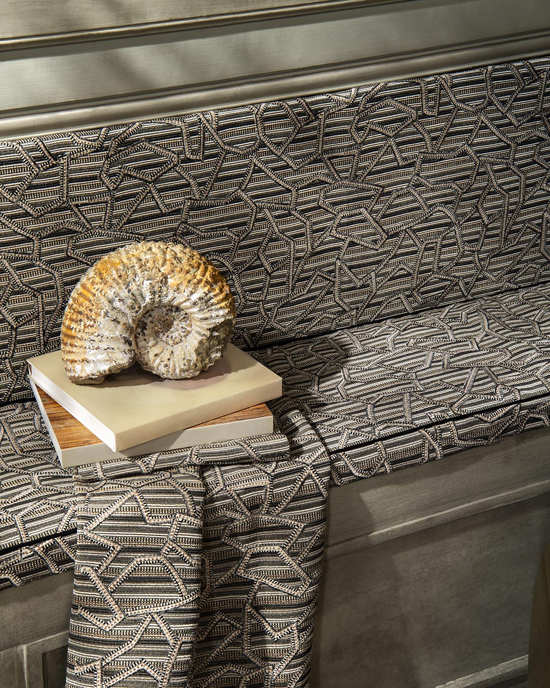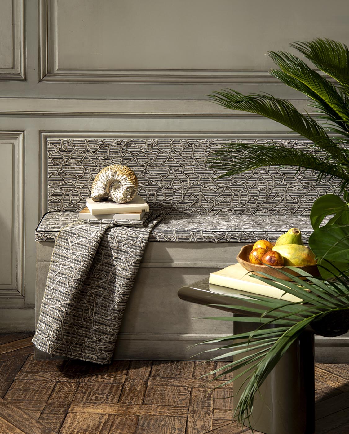 Broderie graphique sur un jacquard côtelé particulièrement lourd et dense, NAZCA évoque avec subtilité un univers où se mêlent influences rupestres et...