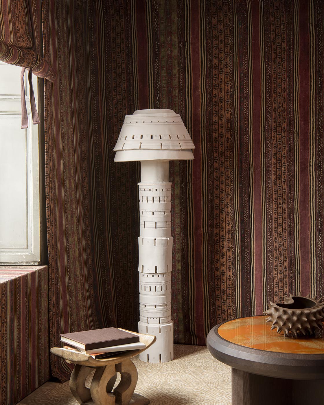 AMMAN est un incroyable trompe-l'œil d’une large rayure toute laize d’inspiration berbère, imprimé sur lin dans des coloris chauds et intenses.