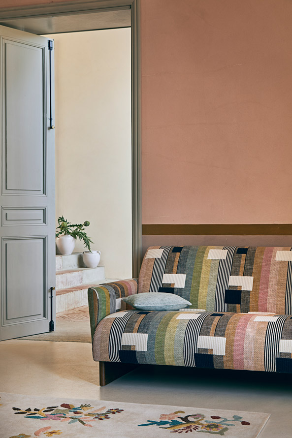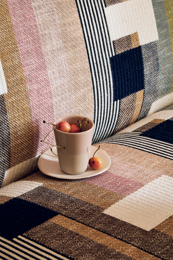Magnifique rayure multicolore s’exprimant sur toute la largeur du tissu, COPENHAGEN se décline dans des teintes pastelles et lumineuses, rythmées de carreaux et de rayures graphiques. Une puissante évocation du design scandinave et d’un goût pour l’art moderniste.