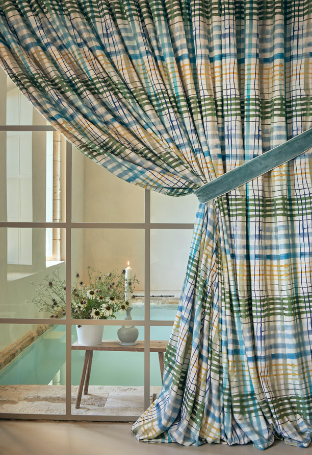 Large carreau aquarellé imprimé sur une toile de lin léger.