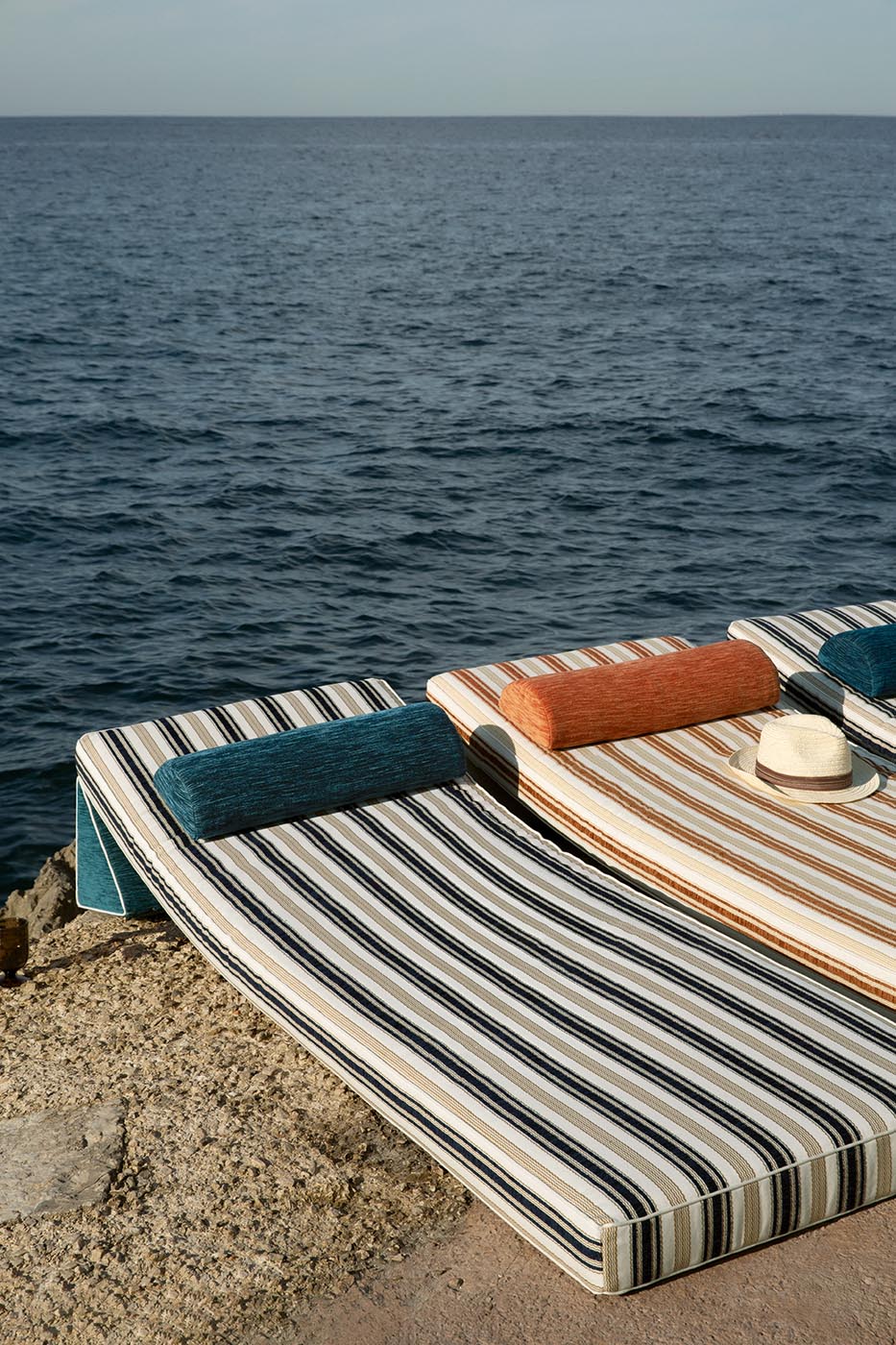 Tissus haute performance, la collection THALASSA revisite les dessins emblématiques de la Maison Le Manach en In-Outdoor aux tissages souples et faciles d'entretien et aux propriétés techniques adaptées à une utilisation en extérieur.