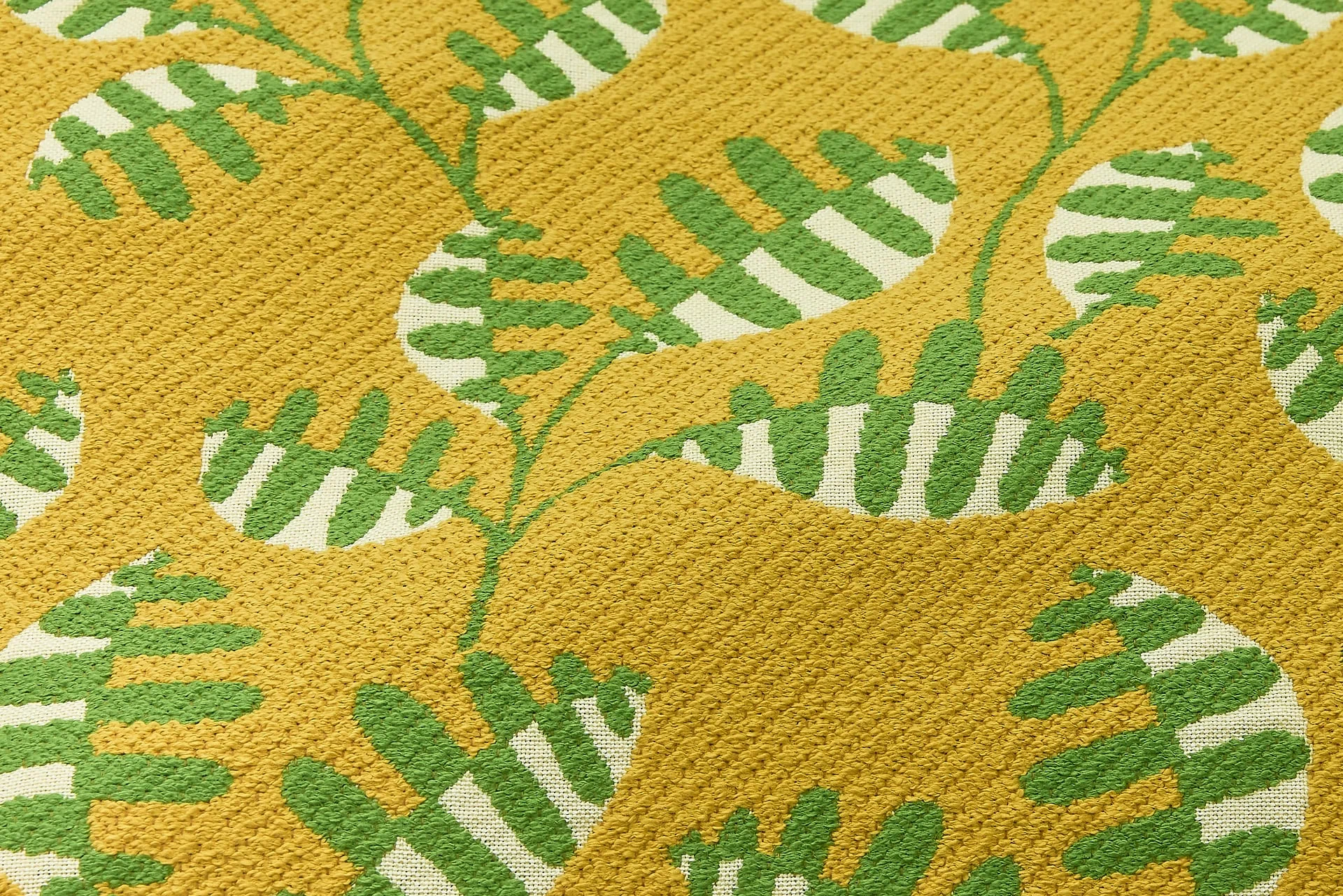 Jacquard graphique, ORME, évoque un motif contemporain de feuilles stylisées.