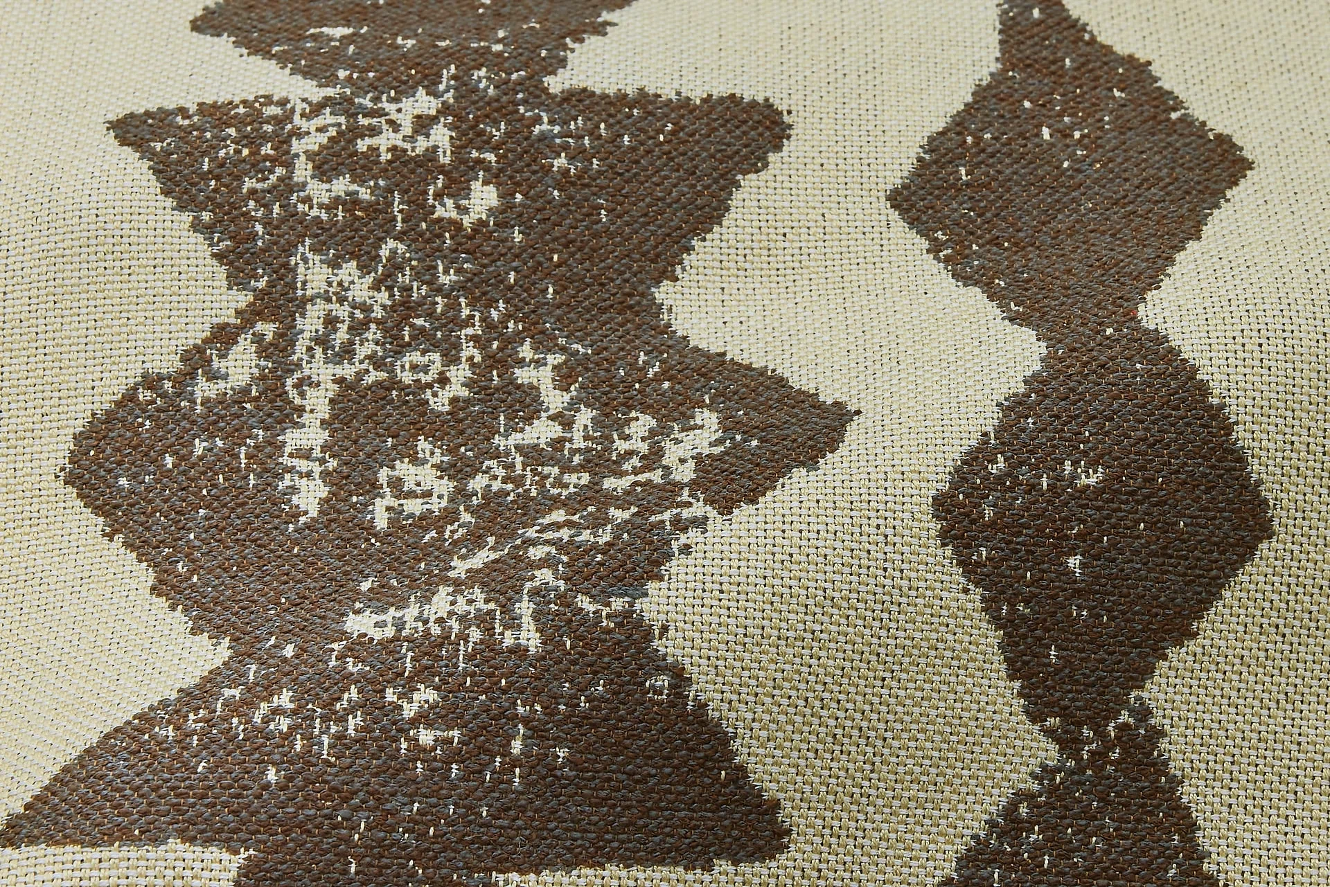 Motif au look ethnique et géométrique, TALISMAN suggère une forte inspiration totémique. L'aspect usé et irrégulier évoque une impression manuelle, co...
