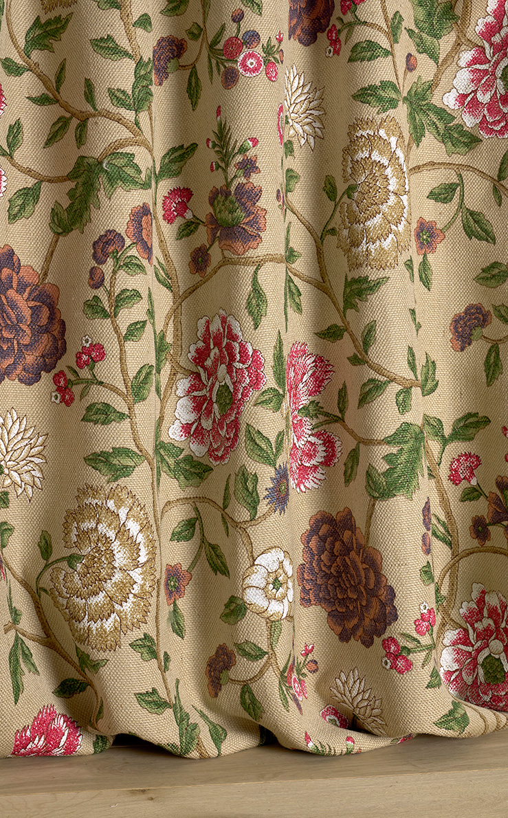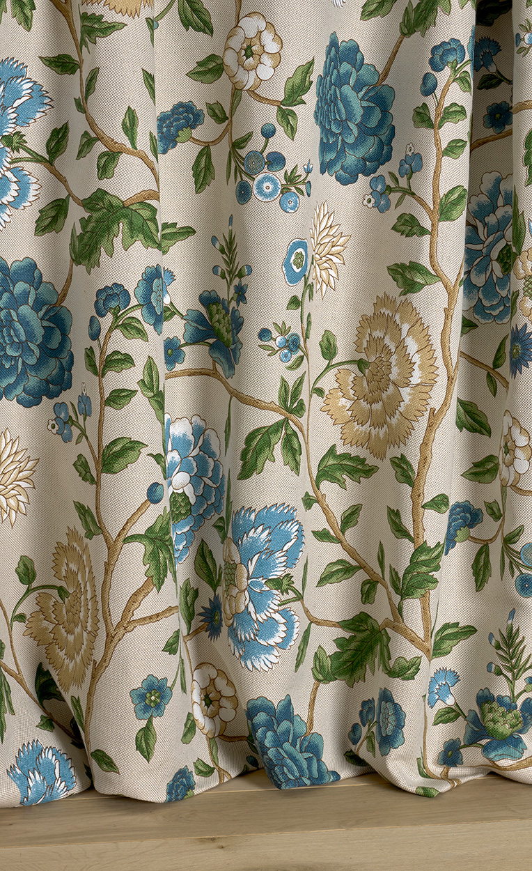Libre interprétation d'une soie chinoise peinte du XVIIIe siècle, tant appréciée à cette époque dans la mode.