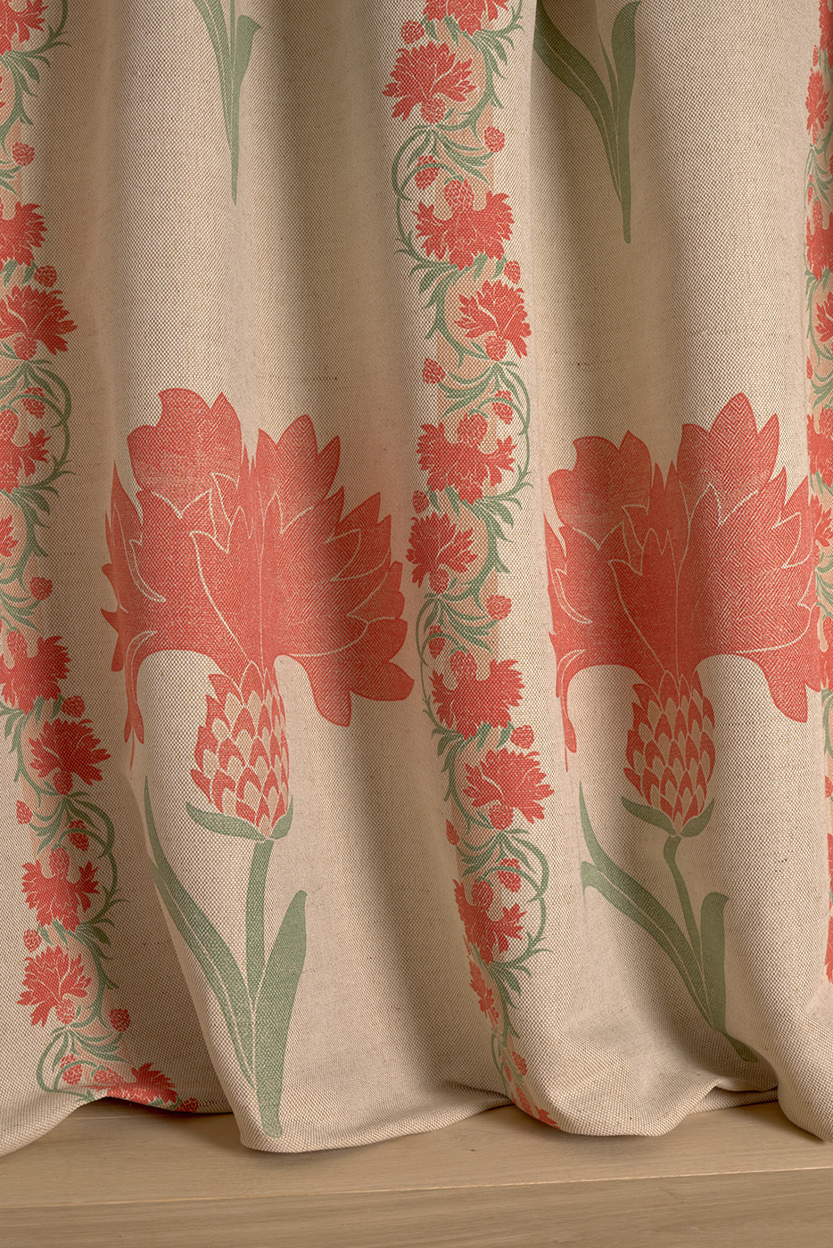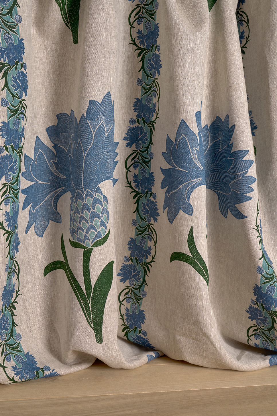 Chardons et guirlandes florales dessinent une rayure fantaisie qui fait écho aux créations Arts & Crafts.