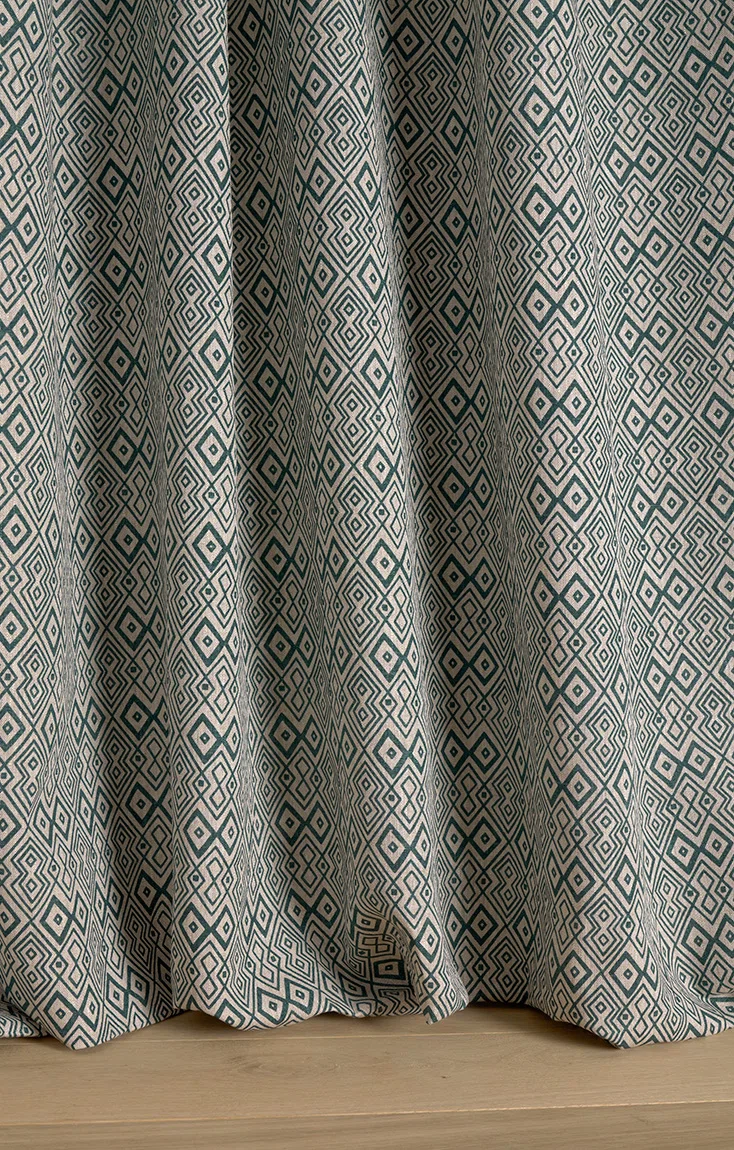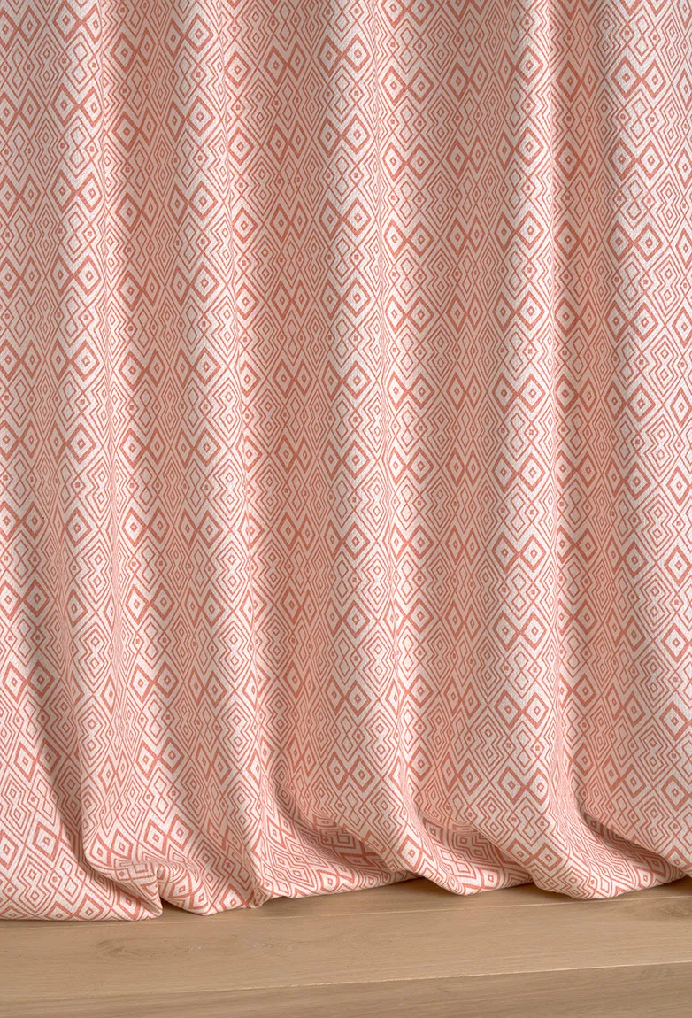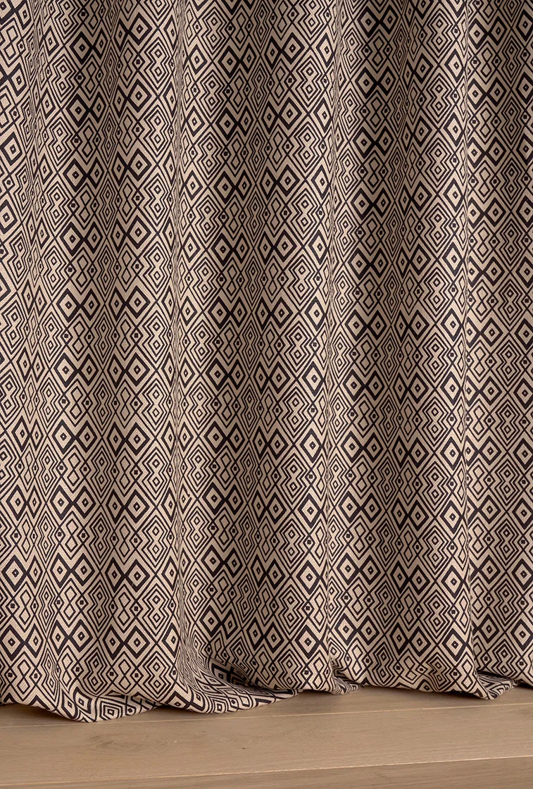 All-over de losanges s'emboitant les uns dans les autres, le motif AVENUE THORP rappelle les broderies de raphia africaines.
