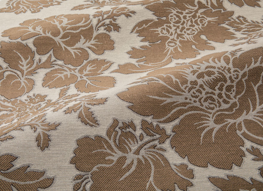 UPPARK est un très beau damas au motif de branches sinueuses fleuries, réalisé dans l'esprit des productions occidentales de la seconde moitié du XIXe siècle qui s'inspiraient des arbres de vie indiens.