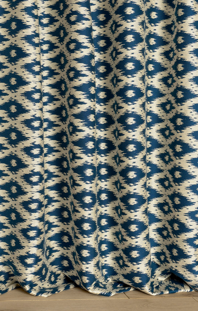 MAJORCA présente un motif d'ikat aux losanges irréguliers évoquant les plus beaux caftans ouzbeks.