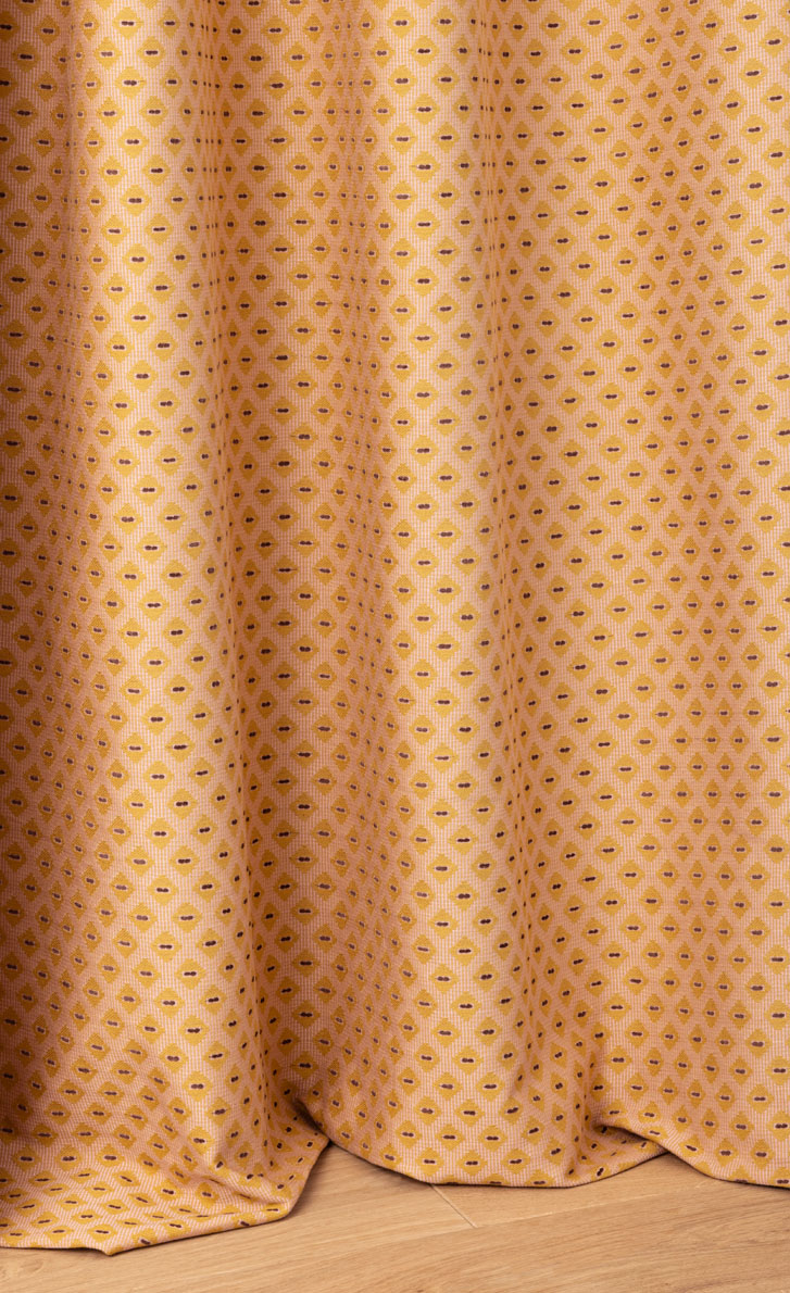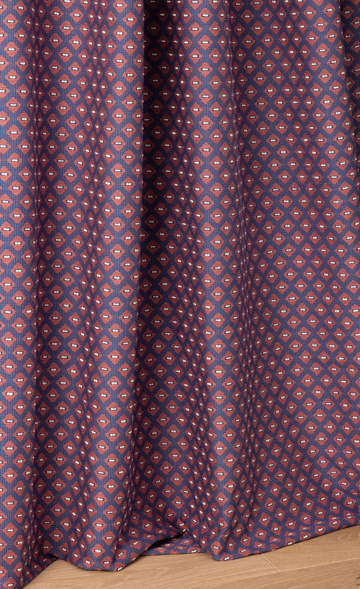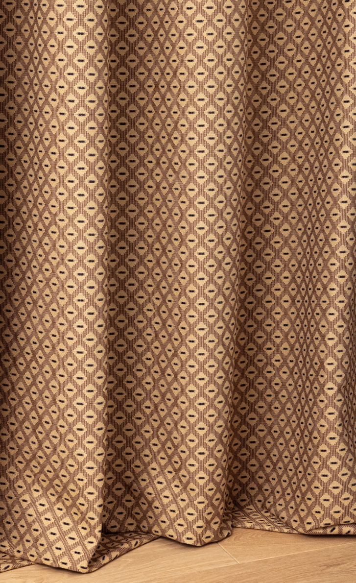 ZIRCONIA s'amuse des formes géométriques avec son motif semé de losanges sur un contre-fond rayé.