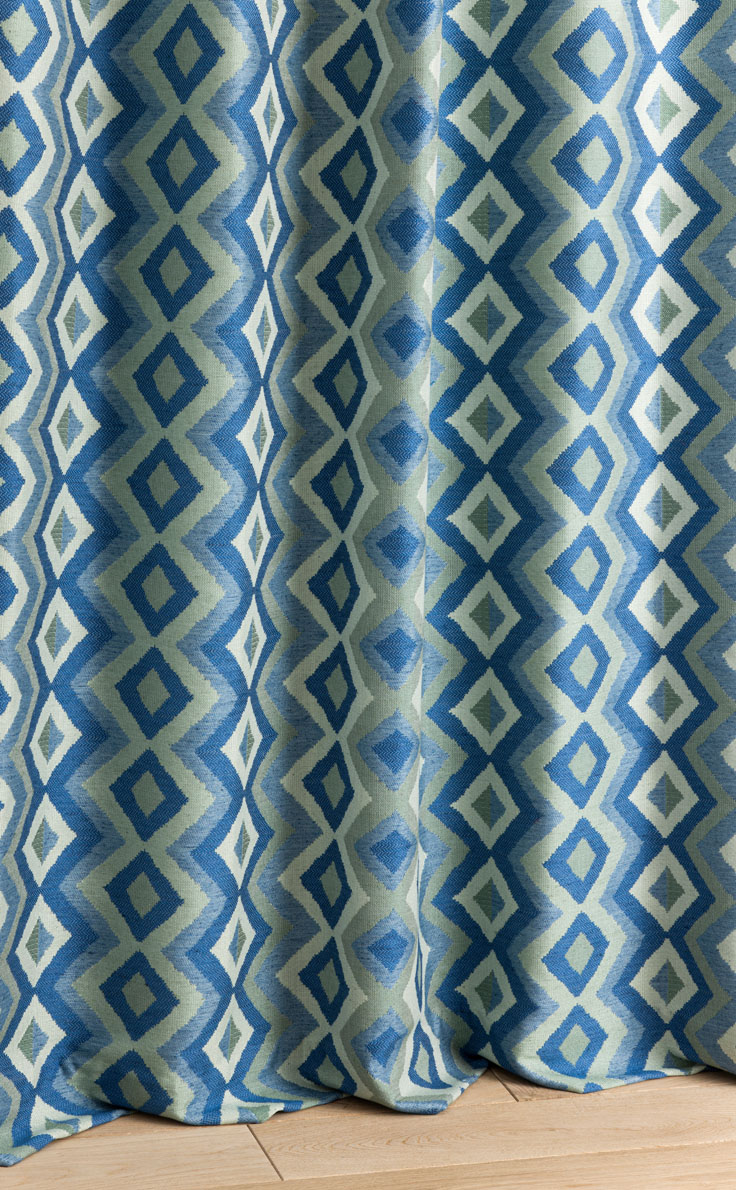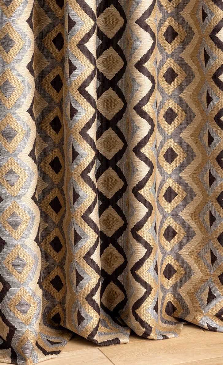 Ce jacquard au grand motif géométrique coloré s'inspire des kilims ou tissages traditionnels africains.